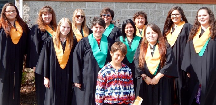 Cynthia Davis, PSW Instructor,Amanda Atwin, Ashley Young, Starla McDougall UNBITI Vice Principal, Morgen Tomer, Savannah Polchies, Melissa Knockwood, Katrina Sacobie, Vicki O'Sullivan ECE Instructor